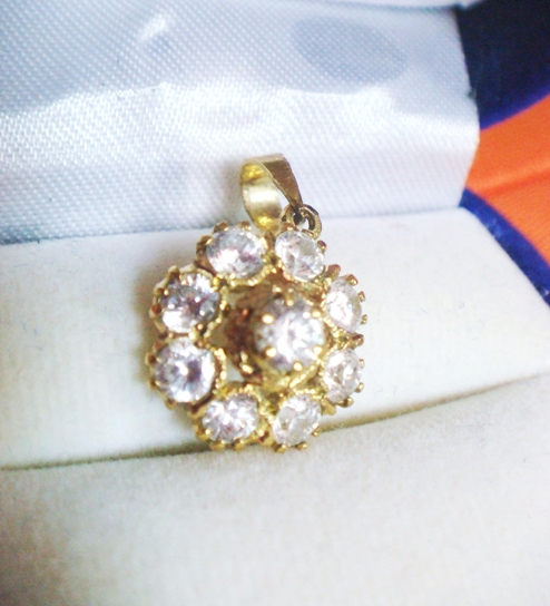 ขายแล้วค่ะ ขายจึ้เพชรมือสอง เพชร ขนาด 0.30 กะรัต รวมเก้าเม็ด ตัวเรือนจี้ yellow gold