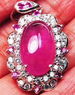 จี้พลอยทับทิม 13.60 กะรัตแบบหรูหราสง่างามประดับเพชรสวิสเกรดเอ รายละเอียด ชื่อสินค้า : จี้เงินชุบทองคำขาวประดับพลอยทับทิม13.60 กะรัต ลักษณะ : จี้เงินชุบทองคำขาว พลอยทับทิมแท้สีแดงอมชมพูน้ำงาม เจียรแบบหลังเบี้ยทรงรูปไข่ น้ำหนัก 13.60 กะรัต ขนาดของพลอย 19x12x5.9 มม.แบบหรูหรา สง่า ประดับเพชรสวิสเกรดเอล้อมรอบ สีขาว สีชมพูเพิ่มความโดดเด่น งานฝีมือช่างจิวเวลลี่จันทบุรี ตัวเรือนเป็นเงินชุบทองคำขาว รวมน้ำหนักเงิน 6.29 กรัม ขนาดกว้าง 2.6 ซม. ยาว 4 ซม. สนใจรายละเอียดเพิ่มเติมติดต่อที่ http://www.Thamanee.com;webboard Tel:081-450-9826 ,นัทค่ะ ราคาคุยกันได้ หรือ