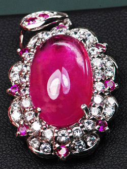 จี้พลอยทับทิม 13.60 กะรัตแบบหรูหราสง่างามประดับเพชรสวิสเกรดเอ