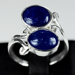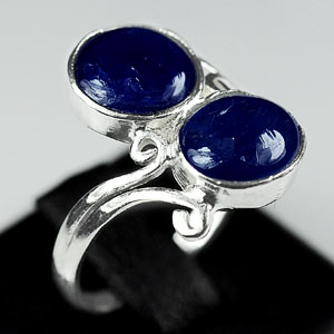 แหวนพลอยไพลินแท้เจียรแบบหลังเบี้ย 2 เม็ดเรียงกันแบบเรียบง่าย(2518)