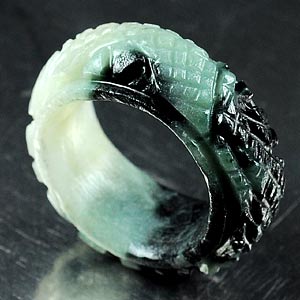 แหวนหยก2 สีเขียว-ขาวแกะลายมังกรรอบวง 63.55 กะรัตหยกไทยหายาก(2517)