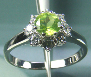 แหวนพลอยเพอริดอดแท้(Peridot) ทรงกลมประดับเพชรล้อมรอบ