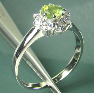 ชื่อสินค้า : แหวนเงินชุบทองคำขาวประดับพลอยเพอริดอด