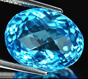 โทแพซพลอยสีฟ้า (Swiss BlueTopaz) 9 กะรัตทรงรูปไข่