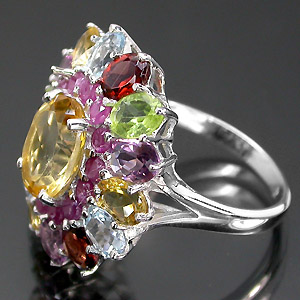 ลักษณะ : แหวนเงินประดับพลอยแท้ เช่น ทับทิม,ซิทริน,แอเมทิสต์,โกเมน,เพอริโด,โทปาส เจียรทรงรูปไข่ปละกลม ขนาดของหน้าแหวน23x21 มม. แบบเรียบหรู ดูดี ใส่ได้ทุกโอกาสทั้งผู้หญิงและผู้ชาย งานฝีมือช่างจิวเวลลี่จันทบุรี ตัวเรือนเป็นเงินชุบทองคำขาว รวมน้ำหนักเงิน 5.46 กรัม