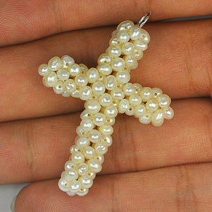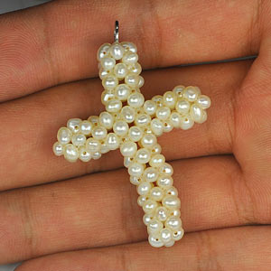 ลักษณะ : พจี้ไข่มุกแท้ทรงรูปกางเขน 29.30กะรัต เป็นไข่มุกน้ำจืด ขนาด 44x34x8.5 มม. งานฝีมือช่างจิวเวลลี่จันทบุรี