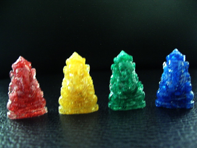 ทำจากเศษพลอย นำมาหล่อเคลือบใส เป็นงานหล่อมีลักษณะคล้ายๆหินแกะสลัก มี 5 สี คือ 1.แดง 2.เหลือง 3.เขียว 4.น้ำเงิน 5.สีรวม ( ขนาด - สูง 1 นิ้ว ฐานกว้าง 0.5 นิ้ว ) เหมาะสำหรับนำไปเป็นของฝาก ของที่ระลึก ของชำร่วยงานมงคลต่างๆ ซึ่งมีคุณค่า และเป็นมงคล ทั้งแก่ผู้ให้และผู้รับ จำหน่าย ราคาส่ง องค์ละ 15 บ. ไม่รวมแพคเกจ เข้าดูรายละเอียดได้ที่