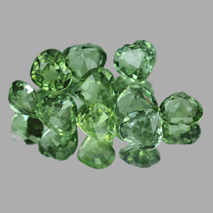 เขียวมรกต (GreenSapphire) 2.30 กะรัต10 ชิ้นสีเขียวอ่อนทรงหัวใจ