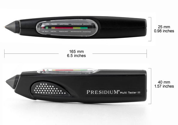 Presidium’s Multi Tester is the world’s first tester that tests for both diamonds and moissanites in a single instrument. Its measuring probes and electronics circuitries detect data from the gemstone being tested via a customized micro-controller, identifying diamonds and moissanites based on their thermal and electrical properties.