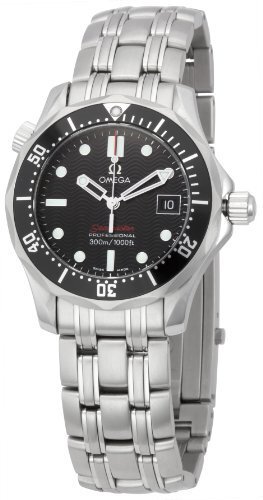 Stainless steel case with a stainless steel bracelet. Unidirectional ion-plated black bezel. Black dial with luminous hands and markers points per hour. Marker minutes around the outer edge. The date appears in the 3-Clock position. Quartz movement. Scratch resistant sapphire crystal. Screw-down crown. Diameter: 36.25 mm. Case height: 11.4 mm. Deployment closure. Water resistant to 300 meters / 1,000 feet. Information: simply end the life of the battery display / change area, the time / helium valve. Omega Seamaster James Bond 300 Watch 212.30.36.61.01.001 average.