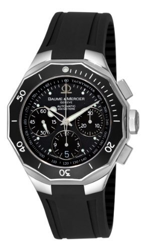 The geometric lines to the men of Baume & Mercier Riviera Chronograph Date added see his generous supply of smart chronograph. Constructed with a stainless steel case, this clock every day includes a stainless steel bezel and a twelve-page black rubber strap with a snap to implement secured. A scratch-resistant sapphire window protects the black dial with silver markings points times run by a tachometer. The line also includes index thin minutes, three chronograph counters and a date calendar at the six position. With a Swiss automatic movement, the clock is waterproof to 330 feet (100 m).