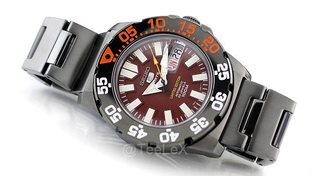 - SEIKO mini monster automatic Burgandy limited edition 1881 เรือน หน้าสี ม่วงน้ำตาล ราคา 14,500