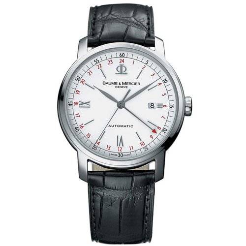 Stainless steel case on a black alligator strap, white dial, applied Roman numerals and indices, Dual time, when the 3 brand, buckle, water resistant to 30 meters, Swiss automatic movement นาฬิการุ่นอื่นที่ขายดี: Baume Mercier Men s 8485, Men s 8594, Men s 8686 , Men s 8688 , Men s 8689 , Baume Mercier Men s 8731,Men s 8749 , Men s 8755 , Baume Mercier Men s 8779, Baume Mercier Men s 8780