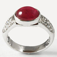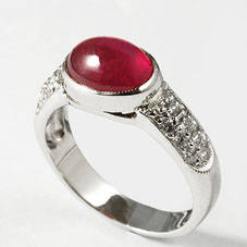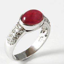 ลักษณะ : แหวนเงินชุบทองคำขาว พลอยทับทิมเจียรทรงรูปไข่หลังเบี้ย เป็นพลอยแท้น้ำงามน้ำหนัก 5.70 กะรัต ขนาดของพลอย 10.2x7.5x6.6 มม.ฝังเพชรสวิสเกรดเอด้านข้างตัวเรือน แบบเรียบหรู ดูดี ใส่ได้ทุกโอกาส งานฝีมือช่างจิวเวลลี่จันทบุรี ตัวเรือนเป็นเงินชุบทองคำขาว รวมน้ำหนักเงินรวม 5.17 กรัม