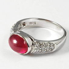 แหวนพลอยทับทิมแท้ (Ruby) หลังเบี้ย 5.70 กะรัตประดับเพชรสวิสเกรดเอด้านข้าง