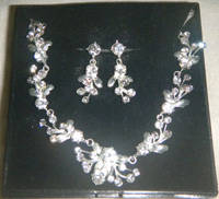 สร้อยพร้อมต่างหูคริสตัล ซื้อจะมาใส่วันแต่ง แต่ไม่เข้ากับชุด ใส่ครั้งเดียวตอนลอง สร้อยยาว 18 นิ้ว มีกล่องใส่เรียบร้อย ราคารวมค่าส่ง (ส่งฟรี) แบบแรก เป็นรูปดอกไม้ ขาย 350 บาท แบบสอง เป็นใบไม้ ขาย 450 บาท