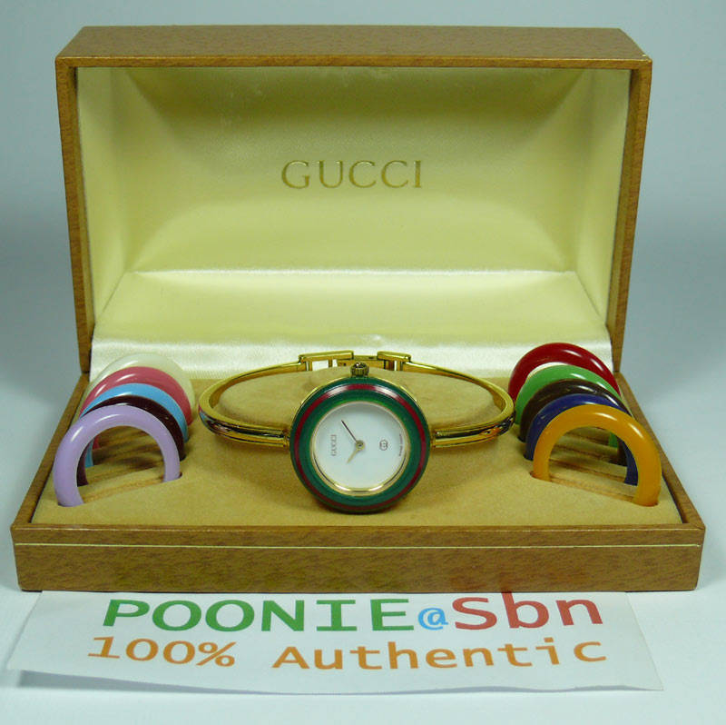 ขาย นาฬิกา Gucci กำไรข้อมือ สีทอง เปลี่ยนกรอบหน้าปัดได้ตามสีเลยค่ะ สภาพดีมากค่ะ พร้อมกล่อง ราคาพิเศษมากค่ะ รับประกันของแท้ 100%