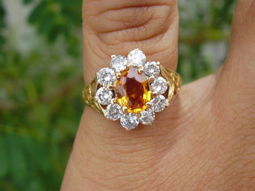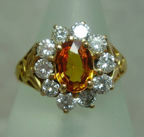 แหวนบุษราคัม ล้อมเพชร พลอยบางกะจะ สีเหลืองเข้มสวย