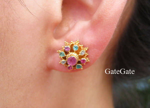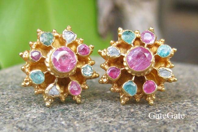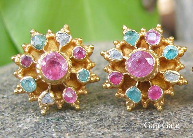ต่างหูเพชรซีก มรกต ทับทิม ทองแท้ 90 งานเก่าโบราณสวยๆ ค่ะ