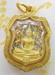 จี้พระหลวงพ่อโสธร กรอบทองหุ้ม 5 ไมครอน ทรงใบเสมา ลายไทย หน้ากว้าง 2*3 ซม. องค์เล็ก