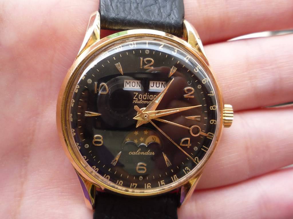 Vintage Zodiac Moonphase Calendar Gold Caped Watch