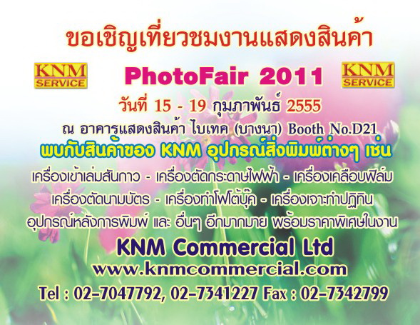 KNM ขอเชิญเที่ยวชมงานแสดงสินค้า โฟโต้แฟร์ 2011 ณ อาคาร ไบเทค บางนา วันที่ 15 - 19 กุมภาพันธ์ 2555
