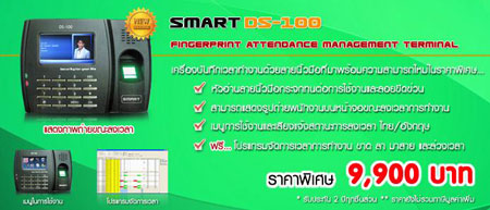 ดี สมาร์ท โซลูชั่น ขาย เครื่องสแกนลายนิ้วมือ Finger Scan เครื่องสแกนลายนิ้วมือราคาถูก ลงเวลาการทำงาน บันทึกเวลาและแสดงภาพถ่ายผ่านหน้าจอ LCD ขนาด 3.5 นิ้ว พร้อมเสียงตอบรับและสามารถรองรับได้ 3,000 หรือ 10,000 ลายนิ้วมืออีกทั้งเพิ่มความจุได้สูงสุดถึง 1GB ดูข้อมูลทั้งแบบ Online Real time หรือแบบ Standalone http://www.xn--12cfj7ea2cfevw1a8aj9d6a1bm0mza0l6a.net/ http://www.เครื่องสแกนลายนิ้วมือ.net DS-100 คือ เครื่องสแกนลายนิ้วมือ เพื่อ ใช้สำหรับบันทึกเวลาเข้าออกงานสำหรับพนักงาน (Time Attendance)โดยใช้ลายนิ้วมือ (Fingerprint)ซึ่งปัจจุบันได้เข้ามาแทนที่เครื่องตอกบัตรแบบเดิมๆ แล้ว เพราะสามารถป้องกันการตอกบัตรแทนกันได้ 100 เปอร์เซ็นต์ รองรับจำนวนผู้ใช้ได้มากถึง 3,000 คน (เก็บลายนิ้วมือคนละ 1 นิ้ว) โดยพนักงาน 1 คนสามารถเก็บได้สูงสุดถึง 10 นิ้ว ด้วยคุณสมบัติที่ โดดเด่น อาทิเช่น หัวอ่านที่ไม่มีการเคลือบด้วยยาง (ทำจากกระจก Crystal) ทำให้ไม่ต้องกังวลเรื่องอายุการใช้งาน ปุ่มกดก็ถูกออกแบบให้ใช้งานง่ายและมีความคงทนไม่ลอก หน้าจอแสดงผลสีขนาด 3.5” ได้ทั้งภาษาไทยและอังกฤษ การสแกนในแต่ละคร้้งก็จะมีเสียงภาษาไทยหรืออังกฤษตอบรับแจ้งให้ทราบผลการส แกนในแต่ละครั้ง พร้อมความสามารถในการแสดงภาพถ่ายของพนักงานผ่านหน้าเครื่องได้อีกด้วย การเชื่อมต่อเครื่องเพื่อ ดึงข้อมูลจากเครื่องสแกนลายนิ้วมือ (Finger Scan) ก็ทำได้ง่ายและสามารถเชื่อมต่อผ่านระบบเน็ตเวิร์ค LAN , หรือดึงข้อมูลผ่าน USB อีกทั้งยังมีความสามารถในการ