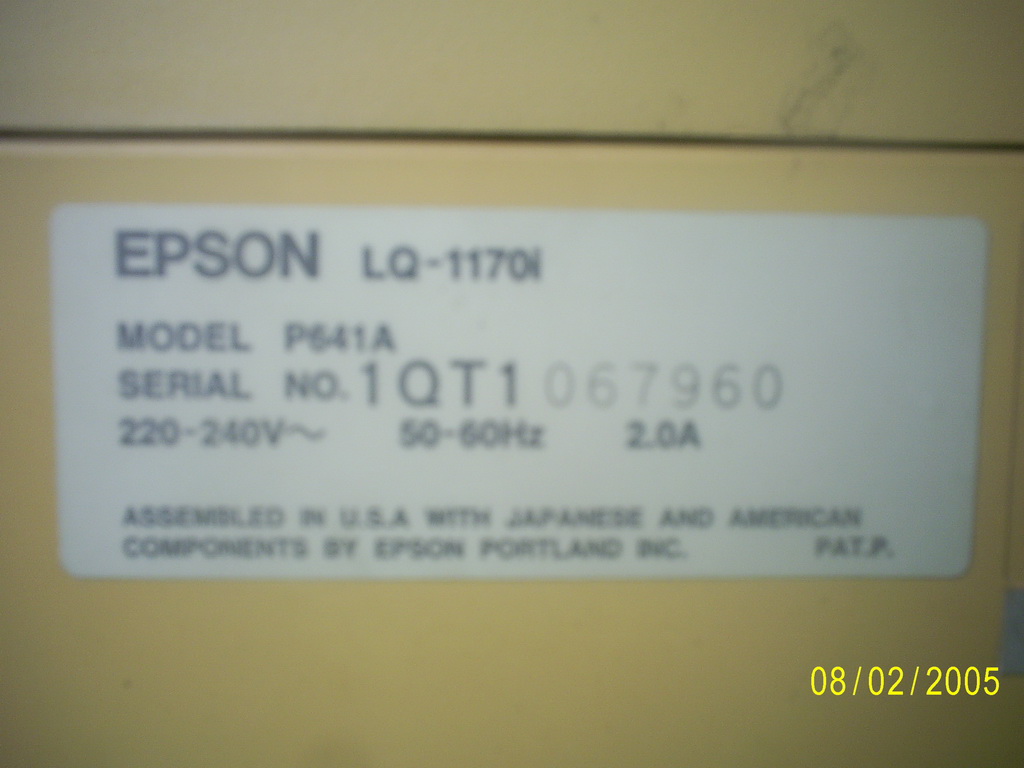 ขายเครื่องปริ๊นเตอร์ EPSON รุ่น LQ 1170 ตัวใหญ่ ชนิดผ้าหมึกสำหรับกระดาษต่อเนื่อง สภาพ 90% พร้อมใช้งาน ไม่เคยเสีย-ไม่เคยซ่อมทนมาก สนใจโทร 0804414228 เอ