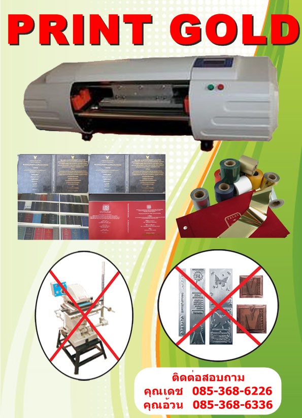 มาเป็นผู้นำด้านนวัตกรรมการพิมพ์ทองด้วย "เครื่องทำปกวิทยานิพนธ์ดิจิตอล" ทำงานง่ายสะดวก รวดเร็ว ประหยัดเวลา ไม่ต้องเรียงตัวตะกั่วหรือใช้บล็อกอีกต่อไป สามารถสั่งงานพิมพ์จากโปรแกรม Word, Coreldraw, Photoshop ฯลฯ การทำงานเพียง 1 นาที ต่อ 1 ปก ติดต่อสอบถาม คุณเดช 085-368-6226, คุณอ้วน 085-368-6336 http://www.rbsale.com