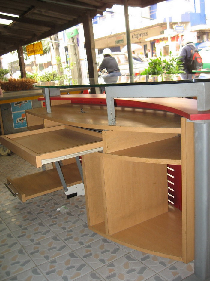 ขายโต๊ะเคาเตอร์โครงเหล็กกระจกหนา-ยี่ห้อPermasa5000