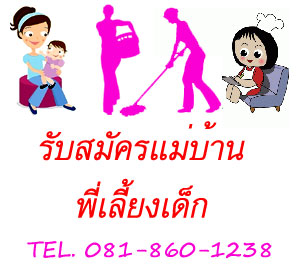 รับสมัครด่วน ! แม่บ้านทําความสะอาด 2 อัตรา,รับสมัครพนักงานพี่เลี้ยงเด็ก,รับสมัครพี่เลี้ยงเด็ก โทร 081-860-1238