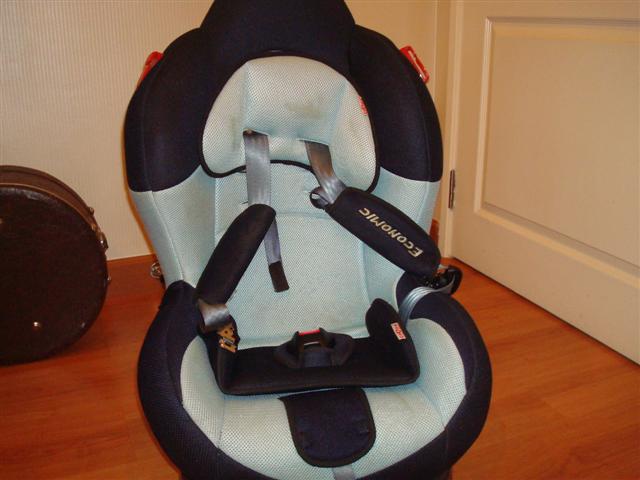 คาร์ซีท ปรับนอนได้ สีน้ำเงินและฟ้าอ่อนค่ะ ของ CAMERA ค่ะ ปรับให้เอนหลังได้เล็กน้อย เหมาะกับเด็กเริ่มนั่งได้ - 3 ขวบค่ะ