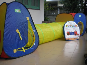บ้านอุโมงค์ เป็นของใหม่ มีส่วนประกอบ 3 ส่วน ทุกส่วน ถอดประกอบง่ายมาก น้ำหนักเบา มีสมอ ปักดิน ไม่ให้เคลื่อนไหว ไม่โผล่มานอกอุโมงค์ ปลอดภัยกะน้องน้อยของคุณแน่นอน ทำความสะอาดง่าย พับเก็บคล้ายที่บังแดด รถยนต์