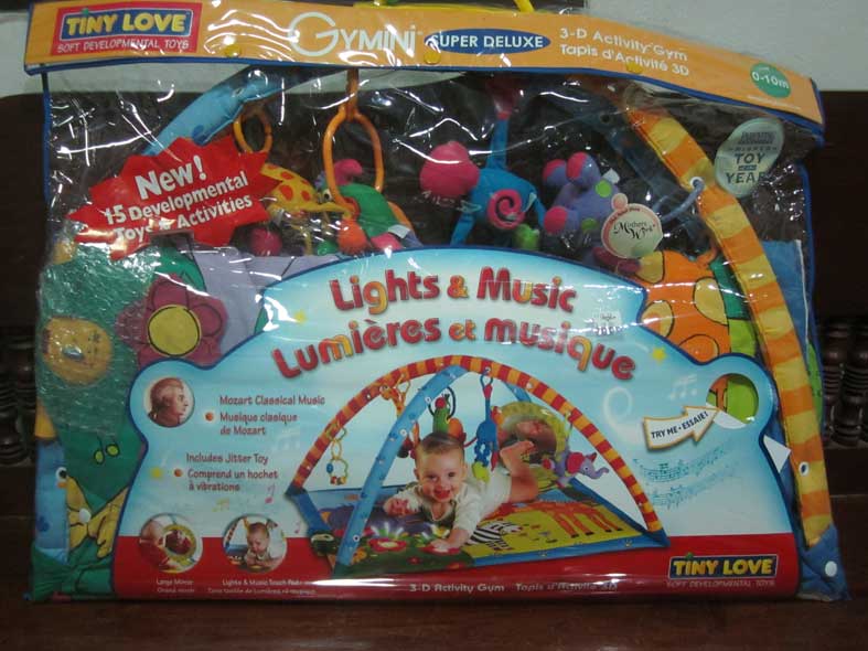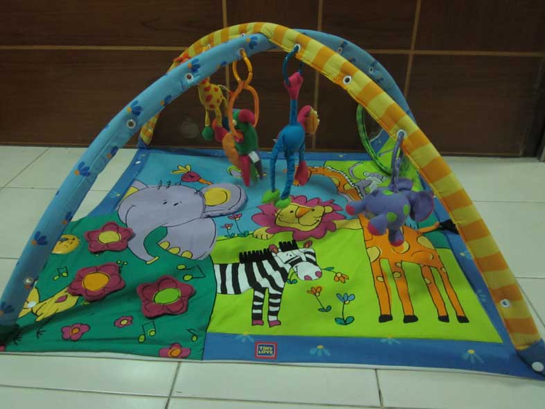 Play gym tiny Love ส่งเสริมให้เด็ก ๆ ใช้ลิฟท์คอและไหล่ของเขาในขณะที่จ้องมองภาพสะท้อนของเขาในกระจก