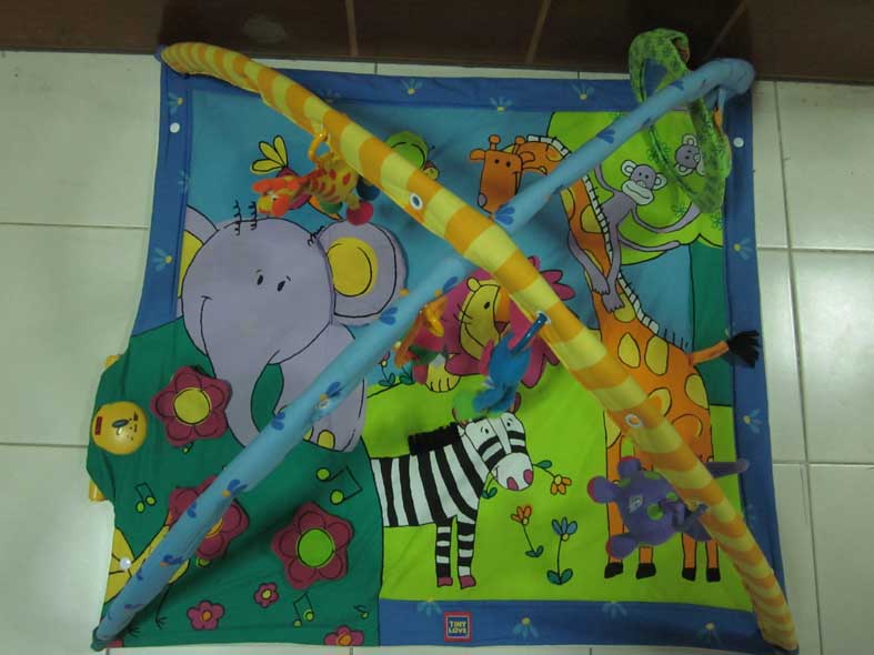 The hanging toys invite baby to reach for them, and baby may find himself rolling over to get to them. ของเล่นแขวนเชิญทารกในการเข้าถึงสำหรับพวกเขาและลูกน้อยอาจพบการพลิกตัวเองที่จะได้รับแก่พวกเขา Reaching for the toys with his arms and legs helps strengthen these important muscles. การเข้าถึงสำหรับของเล่นที่มีแขนขาของเขาช่วยเสริมสร้างกล้ามเนื้อสำคัญเหล่านี้