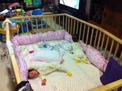 ขายคอกกั้นไม้ธรรมชาติปรับรูปทรงได้ ขนาดเท่าเตียง 3.5 ฟุต แถมหมอนกันกระแทก