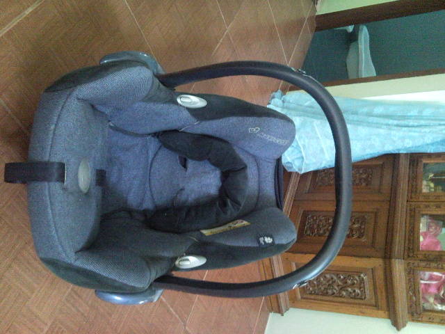 3.คาร์ซีท สีน้ำเงิน ยี่ห้อMaxi-cosiรุ่นคาบริโอ ใช้ในรถยนต์ เข็มขัดนิรภัย3จุด มีช่องเก็บของด้านหลังเบาะ มีที่บังแดด
