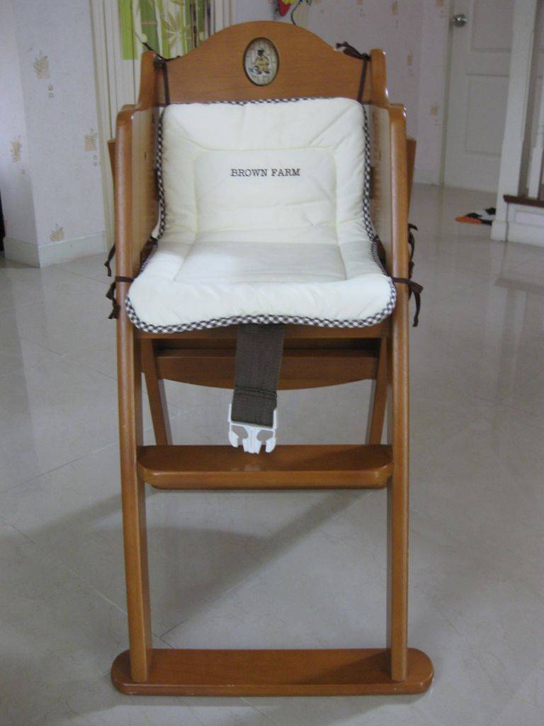 เก้าอี้นั่งกินข้าวเด็ก พร้อมเบาะรองนั่ง ยี่ห้อ Brown Farm สีไม้น้ำตาลเข้ม