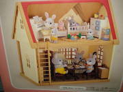 บ้านตุ๊กตาซิลวาเนีย ขนาดสูง 28 ซม.ลึก 20 ซม. กว้าง 30 ซม. อุปกรณ์ครบทุกอย่าง อุปกรณ์ทุกชิ้นปรับโยกไปมาได้ สภาพดี พร้อมกล่อง