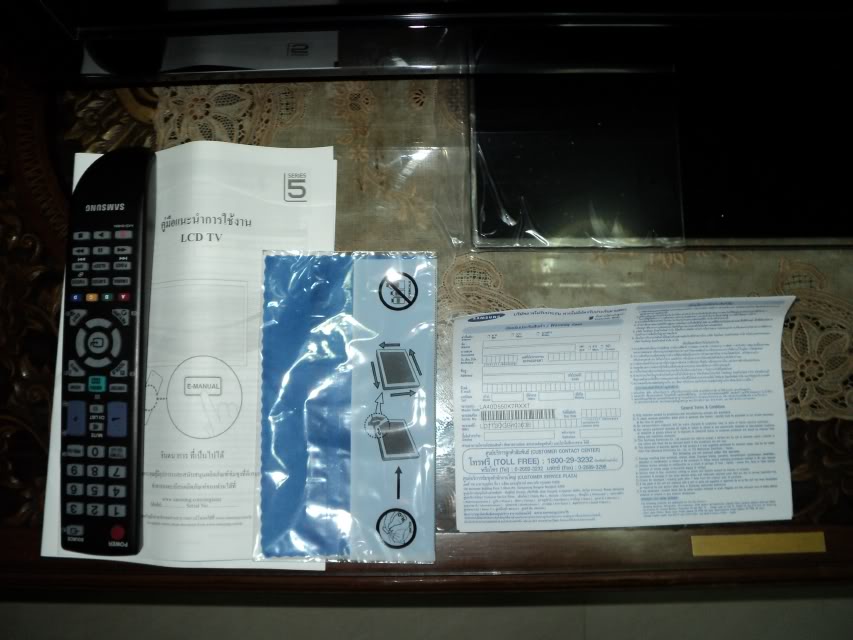 อุปกรณ์ : ทีวี รีโมท คู่มือ ใบรับประกัน กล่องโฟมพร้อมพลาสติกห่อเครื่อง