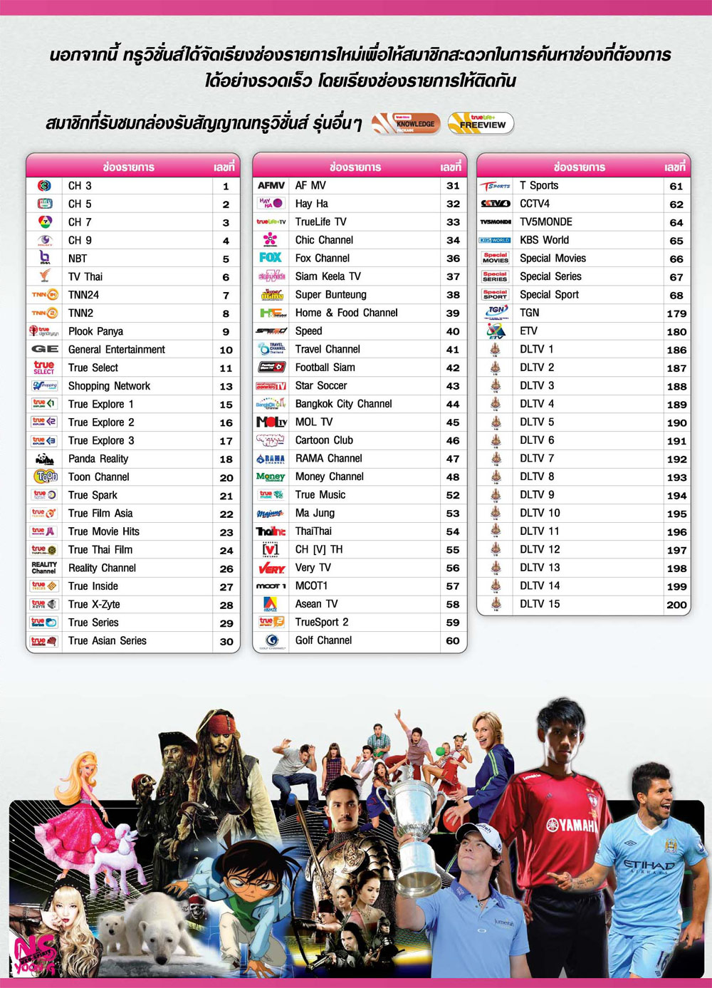 22.FootbollSiam TV, 23.สตาร์ซอคเกอร์ TV, 24.Bangkok City, 25.Miracle of life,26.CartoonClub,