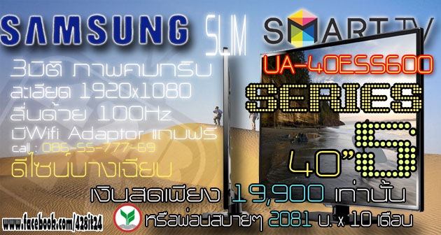 SAMSUNG UA-40ES5600 SLIM LED SMARTTV เล่นเน็ตได้ แถมฟรี!! WIFI adaptor มูลค่า 1490 บ. ดีไซน์บาง กับคนเน้นหรู