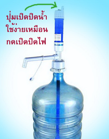 ที่ปั๊มน้ำไฟฟ้า จะช่วยปั๊มน้ำดื่มจากขวดและจากถัง ขนาด 20 ลิตร ถ่ายน้ำจากถังใหญ่มาใส่ขวดเล็กโดยคุณไม่ต้องยกถัง เพิ่มความสะดวกสบาย ใช้งานง่ายเพียงกดเปิดหรือปิดตามต้องการ ตัวปั๊มน้ำก็จะดูดน้ำขึ้นมา ใช้ถ่านไฟฉายก้อนใหญ่เพียง 2 ก้อน น้ำหนักเบา เหมาะใช้กับบ้านเรือนทั่วไป หรือใช้ในที่ทำงานต่างๆ ช่วยให้คุณไม่ต้องปวดหลังปวดหลัง
