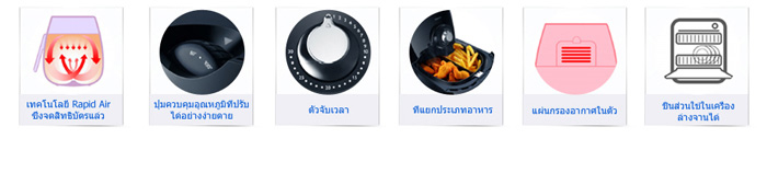 จากการทดสอบ Air fryer สามารถทำเฟรนฟรายส์ได้กรอบอร่อยที่สุด เมื่อเทียบกับหม้อ อบ-ทอดยี่ห้อ อื่นๆ คุณจะได้อาหารที่มีรสชาติดีเยี่ยม ดีต่อสุขภาพในเวลาอันรวดเร็ว ด้วยระบบ “Rapid Air Technology” ซึ่งได้รับสิทธิบัตรเพราะคุณสมบัติที่ช่วยให้ผิวสัมผัสของอาหารมีความ กรอบเป็นพิเศษได้ โดยไม่สูญเสีย ความชุ่มฉ่ำภายใน ลมร้อนที่หมุนเวียนในเครื่องจะช่วยให้ อาหารสุกโดยทั่วถึงในเวลาอันสั้น