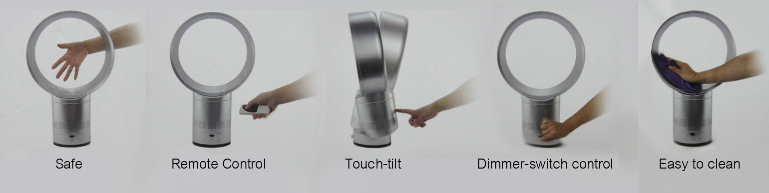 การทำงานของ AIR MULTIPLIER จะดูดอากาศจากส่วนฐาน แล้วส่งผ่านมายังด้านบน ที่เป็นรูปวงกลม(ดูจากรูป) ซึ่งทั้งด้านในและที่ขอบของมันจะเป็นรูปคล้ายๆกับปีกเครื่องบิน ที่สามารถบังคับทิศทางของอากาศให้ไหลผ่านไปยังข้างหน้า และด้วยการออกแบบในลักษณะนี้ จะทำให้มวลอากาศรอบๆตัวมันจากด้านนอก ไหลเข้าไปรวมกับอากาศที่มาจากที่ฐานของมันได้อีก ถือว่าเป็นการเพิ่มแรงลมไปในตัวเลยทีเดียว เพราะกำลังลมที่มันเป่าออกมาให้เรา มีค่ามากกว่าที่มันดูดเข้าไป 15-18 เท่า แรงกว่าพัดลมธรรมดาที่ใช้กำลังไฟเท่ากันเสียอีก ข้อดีที่สำคัญของเจ้าตัวนี้ คือไม่เป็นอันตรายกับเด็ก และสัตว์เลี้ยงที่ชอบเอานิ้วไปแหย่พัดลม อีกทั้งยังทำความสะอาดได้ง่าย เนื่องจากไม่มีใบพัด และตะแกรง
