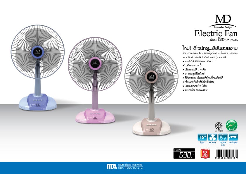 พัดลมตั้งโต๊ะ MD แบบสวย ดีไซน์หรู 16" MD Innovative Design สีสันสวยงาม ขายปลีก-ส่ง กทม ส่งฟรี!
