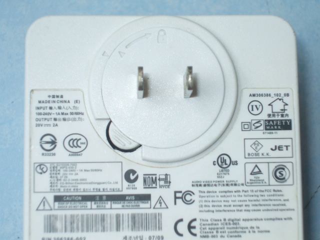 ขายเพาเวอร์ซัพพลายBOSE 95PS-030-2 อะแด๊ปเตอร์จ่ายไฟให้กับชุดลำโพงของBOSE Sounddockของแท้ระบบสวิทชิ่งต่อกับไฟบ้าน110/220ได้เลยจ่ายไฟตรงDC20โวลท์2แอมป์ สภาพดีพร้อมใช้ขาย660สนใจติดต่อคุณ สุวรรณา T.081-686-2338