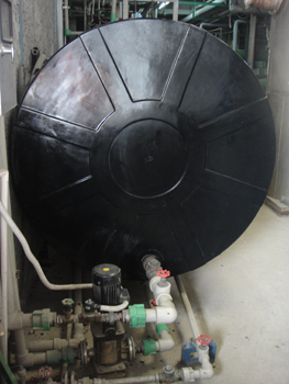 เครื่องทำน้ำร้อนจากเครื่องคอมเพรสเซอร์ ( Hot Water System ) โดยใช้เพลทแลกเปลี่ยนความร้อน ขนาดแท็งก์4,000 ลิตร ขนาดปั้ม 3 Kw.