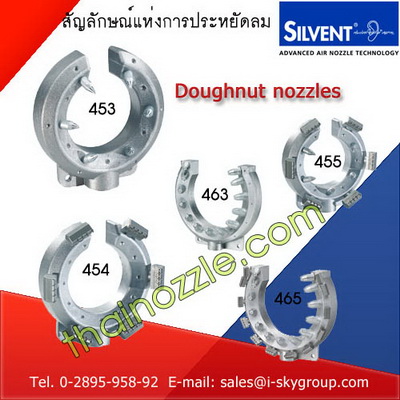 หัวเป่าลม แบบโดนัท Doughnut nozzles เหมาะกับงานท่อทุกชนิด SILVENT สัญลักษณ์แห่งการประหยัดลม คุณสมบัติหัวเป่าลม -ออกแบบตามหลักกลศาสตร์ กระแสลมฉีดครอบคลุมพื้นที่ได้ 360 องศา แบบมี 1 วง (ขนาดเล็ก S) -ออกแบบให้ฉีดต่อเนื่องในความเร็วสูง และการผลิตที่มีความเร็วสูง เหมาะกับงานที่มีลักษณะที่เป็นท่อ แท่ง สาย เช่น งานสายไฟ,สายเคเบิ้ล,เส้นลวด,ท่อยาง,สาย PU, งานพลาสติกที่ขึ้นรูปเป็นท่อ,แท่ง,เส้น ใช้เป่าล้างทำความสะอาด เป่าแห้ง -มีขนาดให้เลือกตามขนาดของ ท่อ แท่ง ที่ใช้ ตั้งแต่ ขนาดเล็ก จนถึงขนาดใหญ่Diameters of 5 to 205 mm (0.2