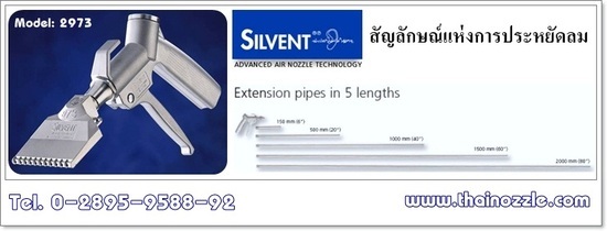 รูปแบบปืนฉีดลม(Safety air guns) รุ่น 2973 คือปืนลมที่ให้แรงของลมที่ปะทะกับวัตถุที่สูง เมื่อเทียบกับปืนฉีดลมทั่วไปด้วย การออกแบบของ SILVENT ต้องการแรงลมมาก ๆ แรงลมมากกว่าปืนลมทั่วไป ถึง 2 เท่า!! ไม่เกิดลม Drop ซึ่งปืนฉีดลมรุ่นนี้สามารถให้แรงลมได้ถึง 9.5N กำลังแรงลมที่ออกมาให้เสียงที่เบากว่า เมื่อเทียบกับแรงลมที่ได้จากท่อปากเปิดที่ความดันลมเท่ากัน และยังมีความยาวท่อ ให้เลือกถึง 5 ระดับ เพื่อให้สะดวกต่อการเข้าถึงงานแต่ละชนิด